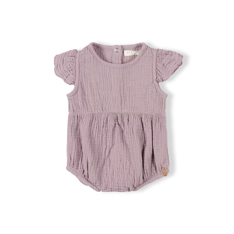 Een super schattig zomerpakje voor de meisjes! Dit pakje is gemaakt uit GOTS biologisch mousselinekatoen (tetrastof) in de zachte paarse kleur Violet. Er zijn drukknoopjes tussen de benen om gemakkelijk te verversen. Ook op de rug zijn drukknoopjes zodat het omkleden vanzelf gaat. De mouwen hebben een leuke afwerking om vrolijk de zomer in te gaan! Is het toch nog wat te fris. Trek een dan een body met lange mouwen onderaan of een sweater erover.