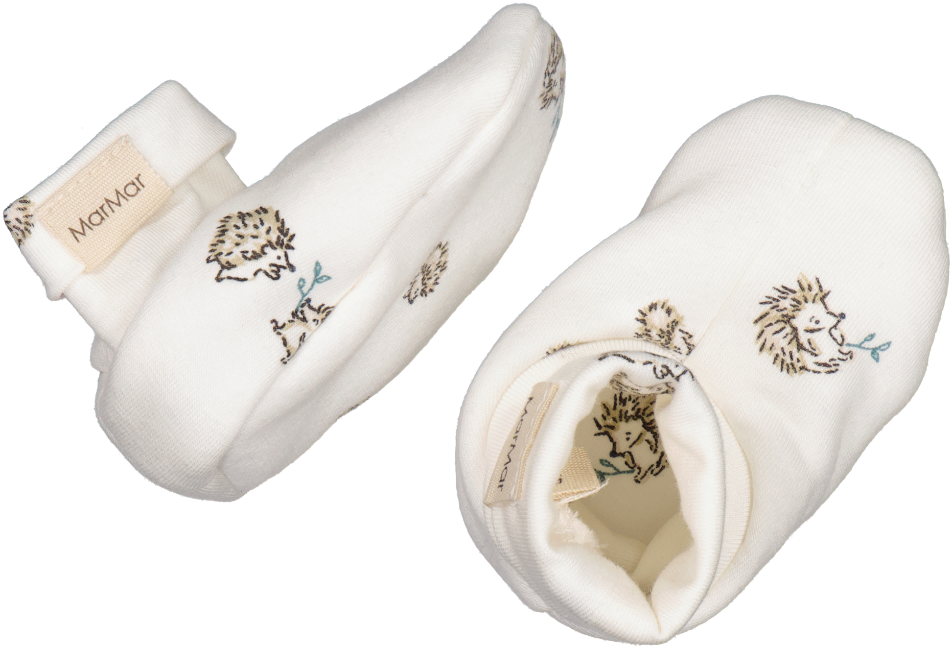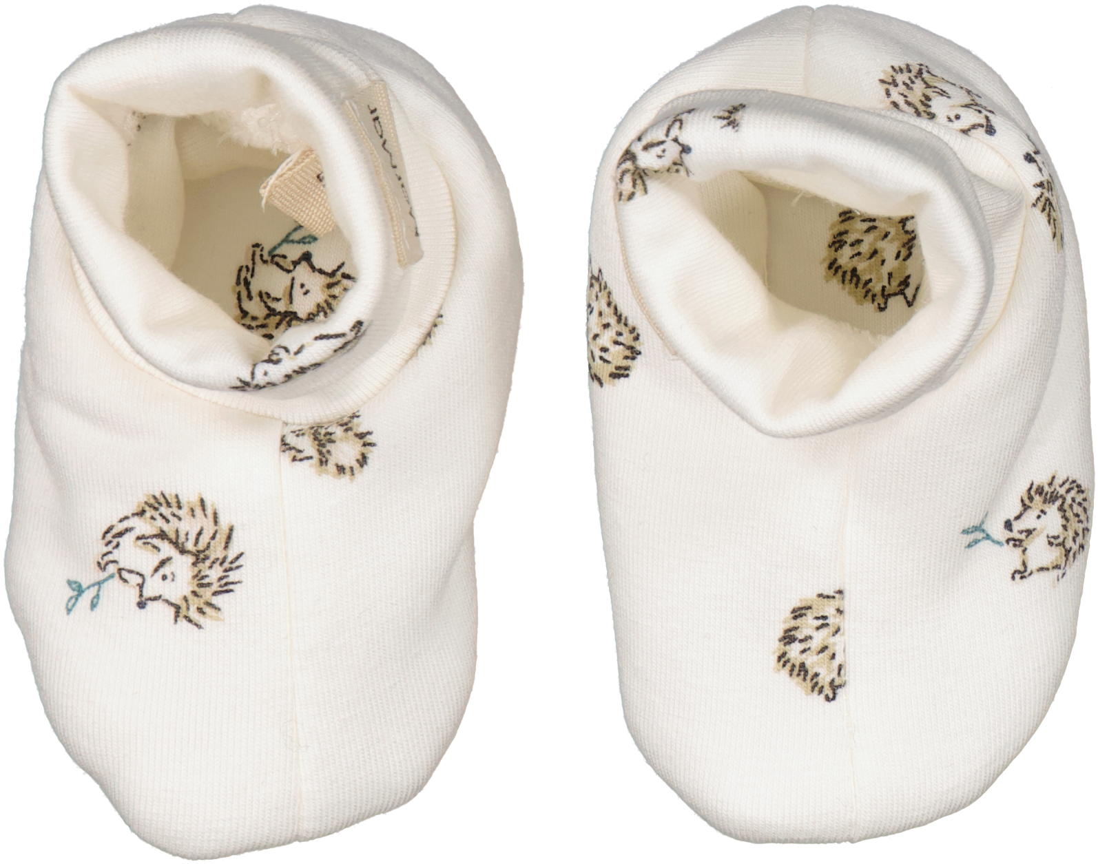 Maak de outfit van je baby af met deze slofjes van Marmar Copenhagen in de Forest Friends print, met schattige egeltjes.