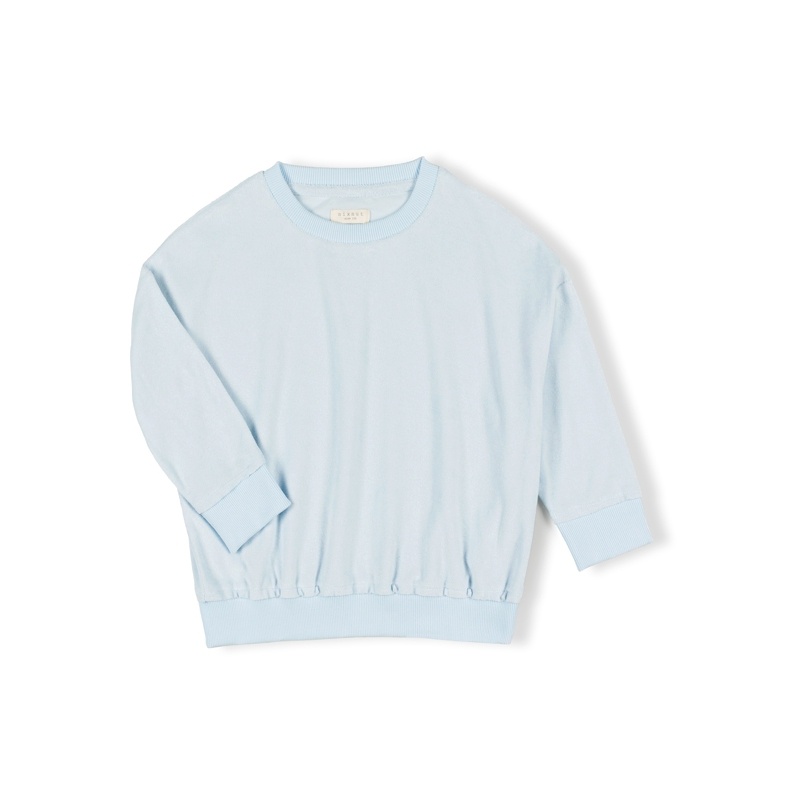 Deze heerlijke en zachte sweater in de frisse tint Cloudy is een echte must-have voor je kleintje! Gemaakt van 100% biologisch badstof katoen, voelt hij superzacht aan en biedt hij ultiem draagcomfort. Het relaxte model maakt deze trui perfect voor een casual, zomerse look. Afgewerkt met het subtiele leren Nixnut-label op de achterkant voor een stijlvolle touch.