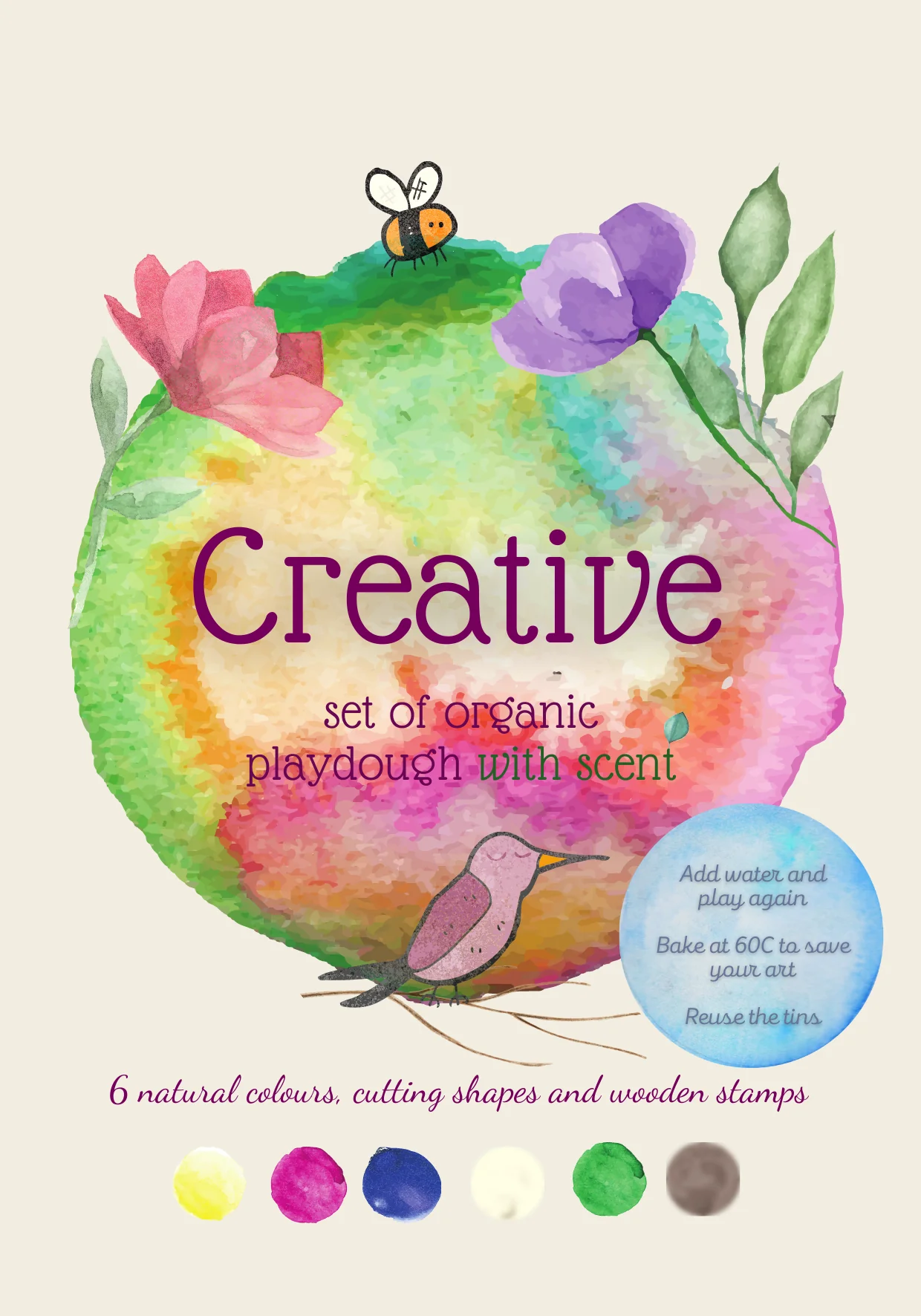 Ontdek de magie van creatief spel met de biologische boetseerklei set van Creative. Deze set is speciaal samengesteld voor jonge ontdekkers en bevat alles wat je kleintje nodig heeft voor uren speelplezier. In de set vind je 6 herbruikbare blikjes van 120 gram met organische, sensorische boetseerklei in prachtige, speelse kleuren. Daarnaast krijg je een zakje met mooie natuurstenen, twee houten stempels en twee leuke vormpjes (willekeurig gekozen) om de creativiteit helemaal de vrije loop te laten.