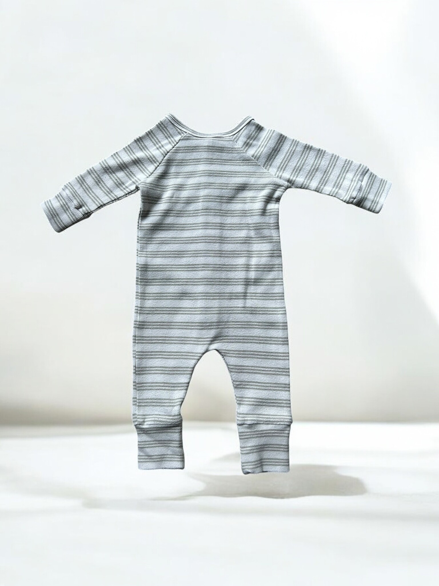 wit-grijs gestreept in een zachte ribstof met veel stretch